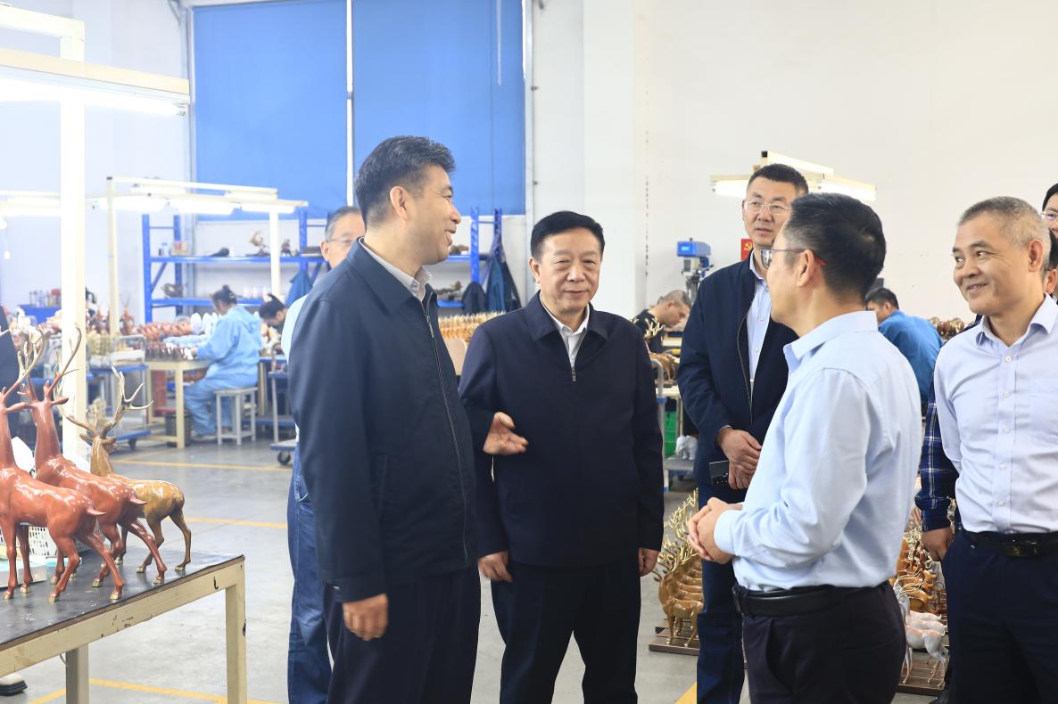 公司負(fù)責(zé)人郭飛陪同參觀并匯報(bào)了企業(yè)生產(chǎn)經(jīng)營、市場銷售、非遺技藝傳承等情況。調(diào)研組深入車間詳細(xì)了解銅工藝品制作技藝、工藝傳承創(chuàng)新,曲福田副主任對我公司把傳統(tǒng)工藝和現(xiàn)代創(chuàng)意有機(jī)結(jié)合做法給予充分肯定,并就優(yōu)化產(chǎn)品結(jié)構(gòu)、提升產(chǎn)品競爭力與公司負(fù)責(zé)人進(jìn)行交流探討,他希望銅官府進(jìn)一步強(qiáng)化品牌培育,用匠心延續(xù)銅工藝的“金”字招牌。
