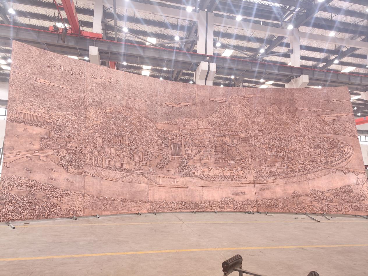 站房西側(cè)銅雕《千年古邑如畫杭川》(圖片來自中國鐵路)